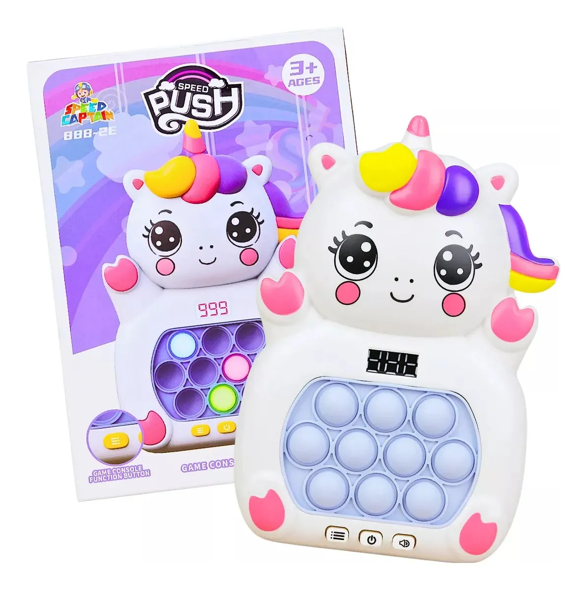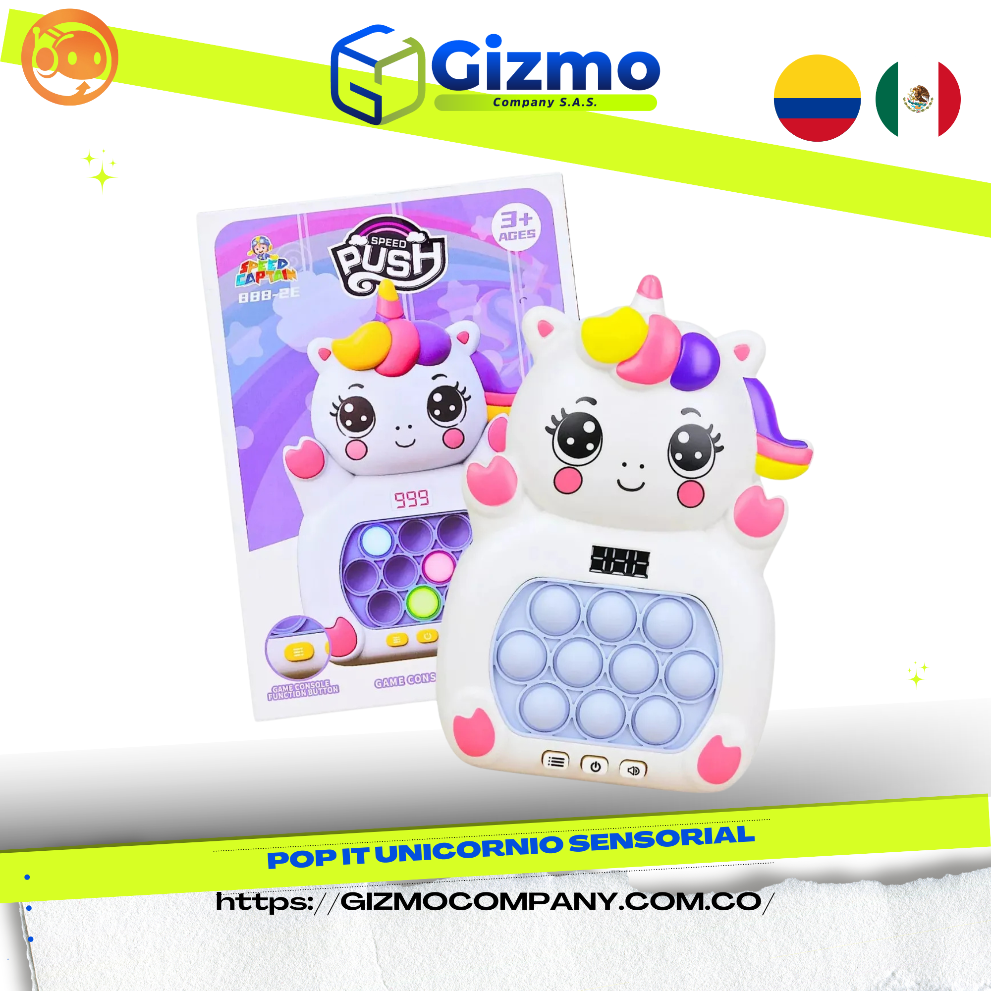 El Juguete Pop It Unicornio combina diversión sensorial con diseño mágico. Fabricado en silicón duradero y seguro, este juguete permite presionar sus burbujas repetidamente para liberar tensión, mejorar la concentración y brindar momentos relajantes. Su forma de unicornio lo hace ideal tanto para niños como adultos, y se adapta perfectamente a escritorios, mochilas o espacios creativos.